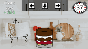 Use Arrow Keys to follow the sequence shown. Then, hit Space to try another cake layer to earn more cash, or hit Enter to sell it. You can only sell fully decorated cakes, so try not to get too ambitious!